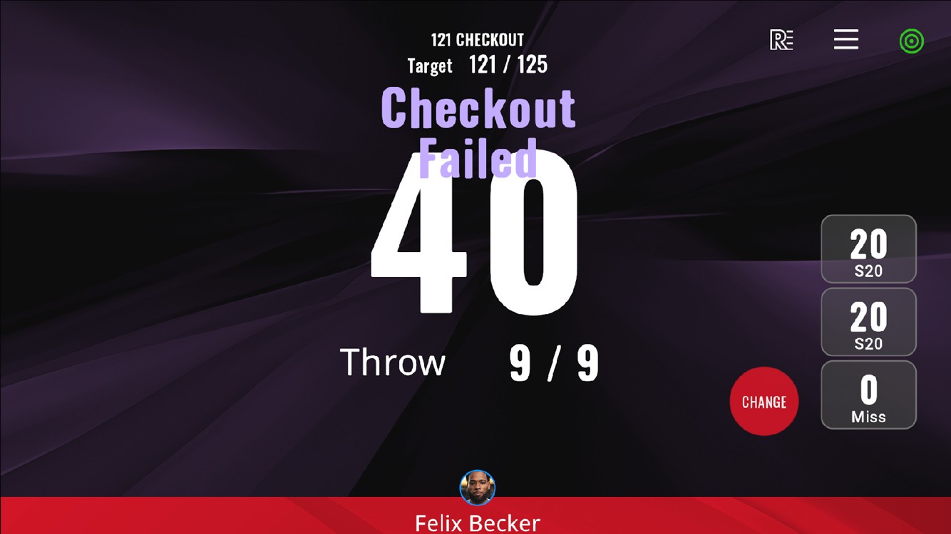 - If Max Darts per Score is set to 3, only scores 121–170 that allow a valid double-out or inner-bull finish can be selected