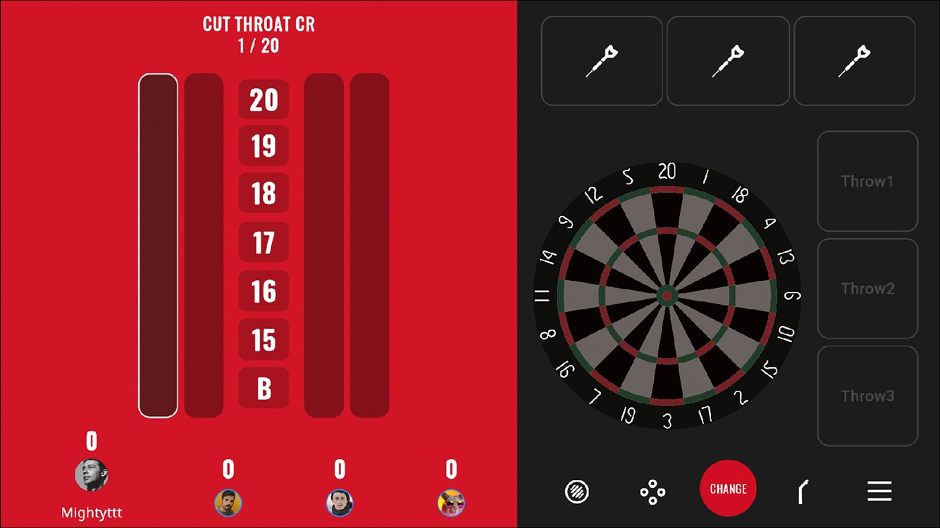 CUT THROAT is a game based on STANDARD CRICKET game rules. The big difference is to add points to others, and that person who has the lowest score becomes a winner. If you don't know the rules of STANDARD CRICKET game rule, please check the How to Play STANDARD CRICKET first.