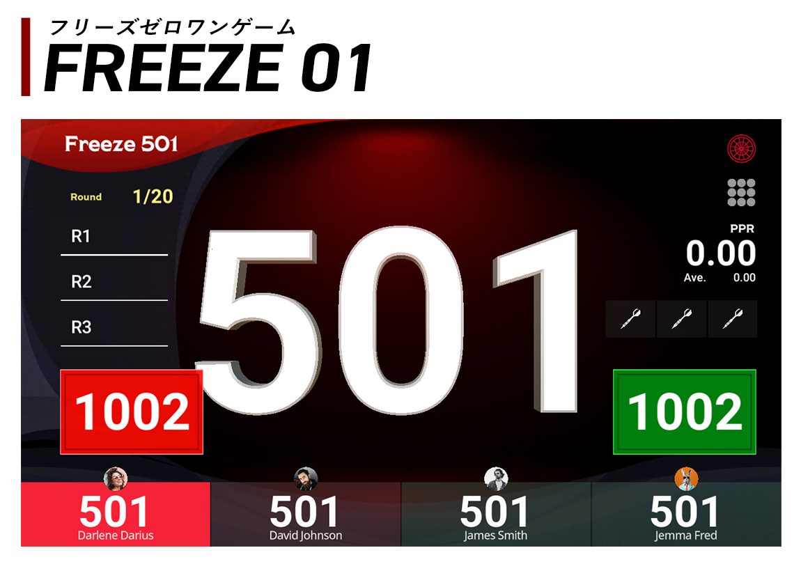 Freeze 01 is a team-based 01 game where teamwork determines victory. Any player can win for the team by checking out, but only when your partner has a lower score than the opposing team's total. Race to zero together while managing both teammates' scores strategically!