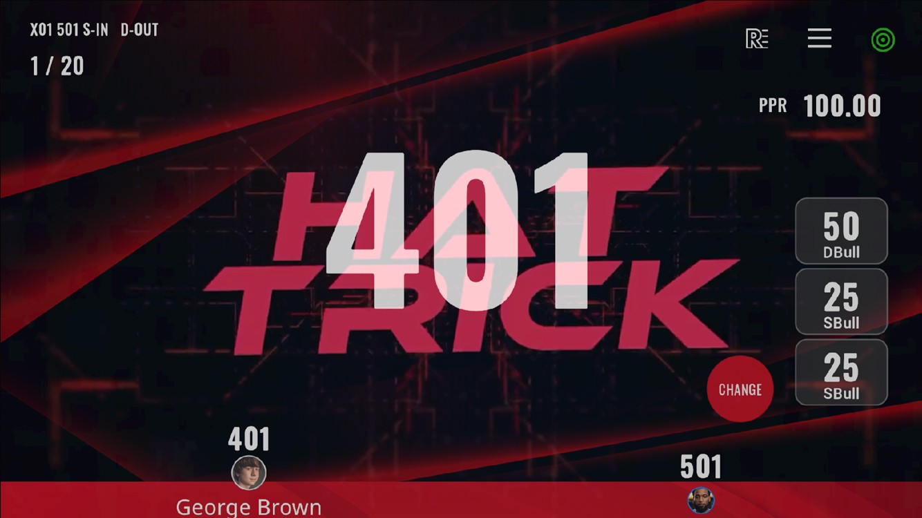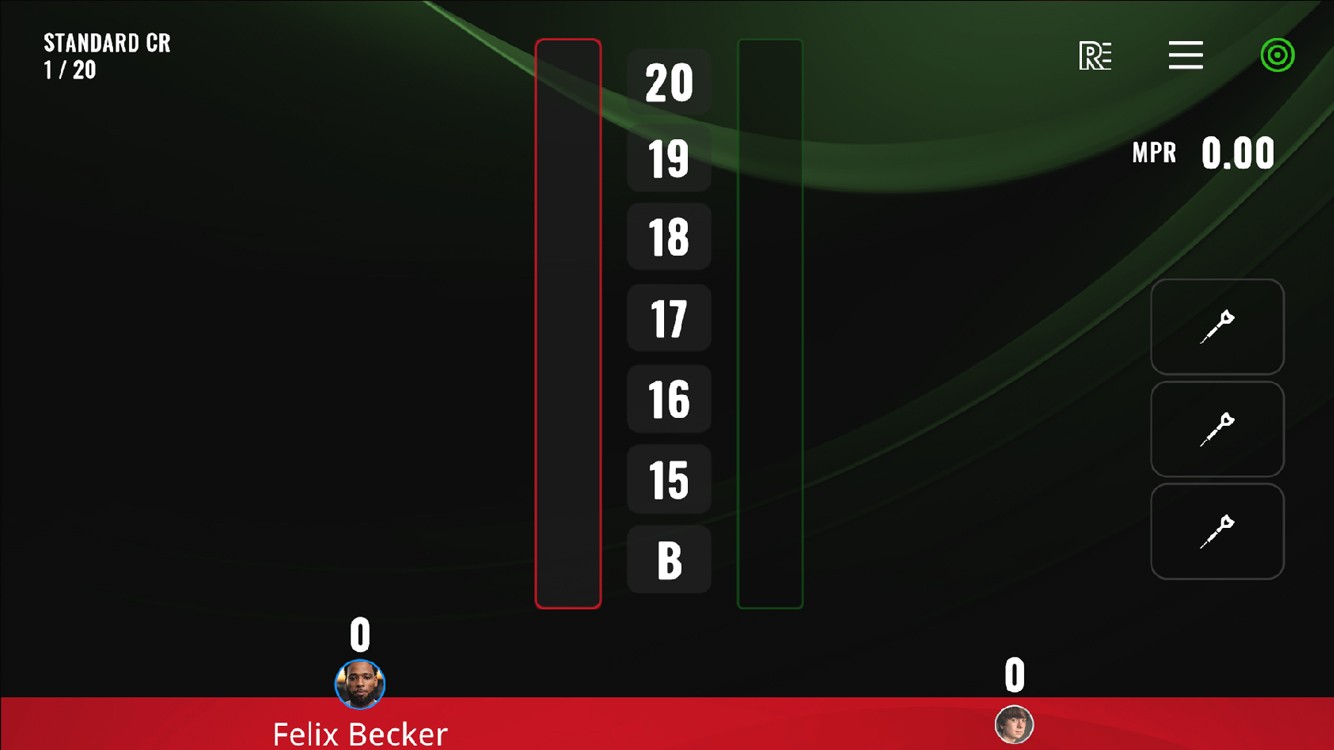 MATCH is a best-of series format that alternates between 01 and Standard Cricket. Each individual game is called a LEG, and you compete across multiple legs to determine the winner. For instance, a 3-game series might play out as "01-Cricket-01" or "01-Cricket-Cricket", depending on your settings.