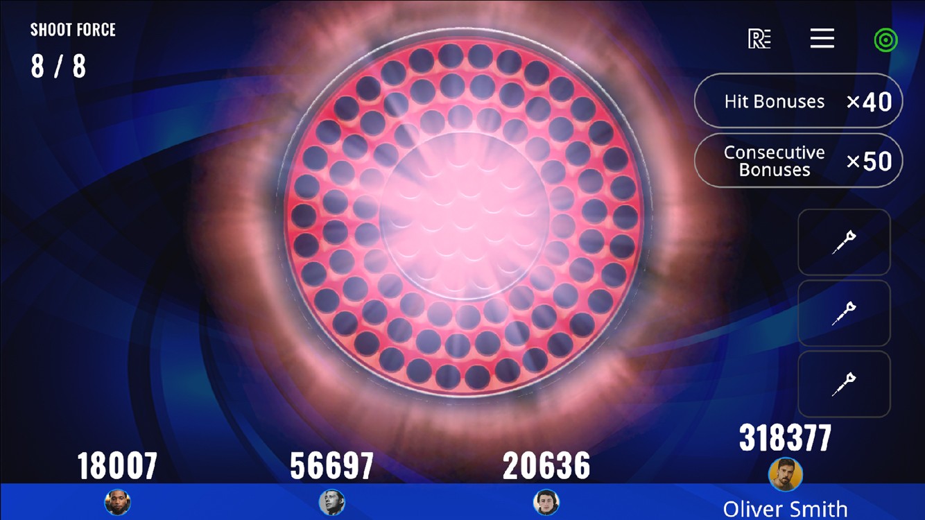 To get a high score, there is Triple Bonus that is available when you make three triple shots in a round. You have a chance to try every round to get 3000 points! Let’s try to shoot at triples.