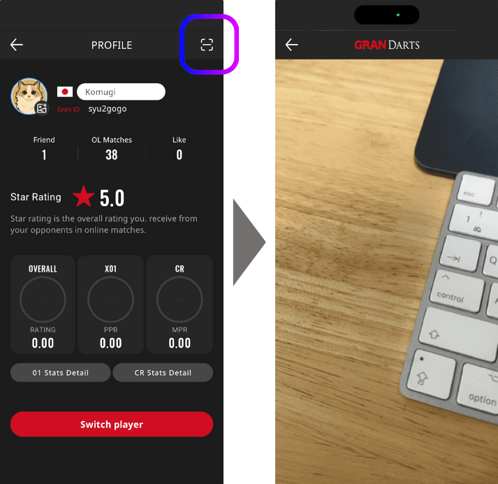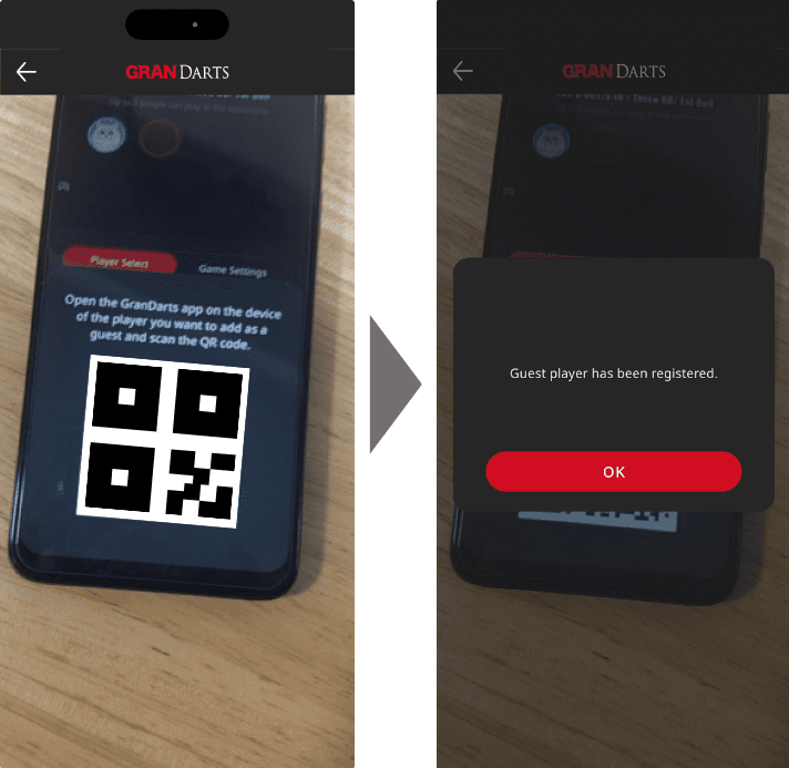 This feature allows players (hosts) logged into the Gran Darts app to temporarily log in other players' (guests) accounts, enabling them to play together within the same app using each player's data.