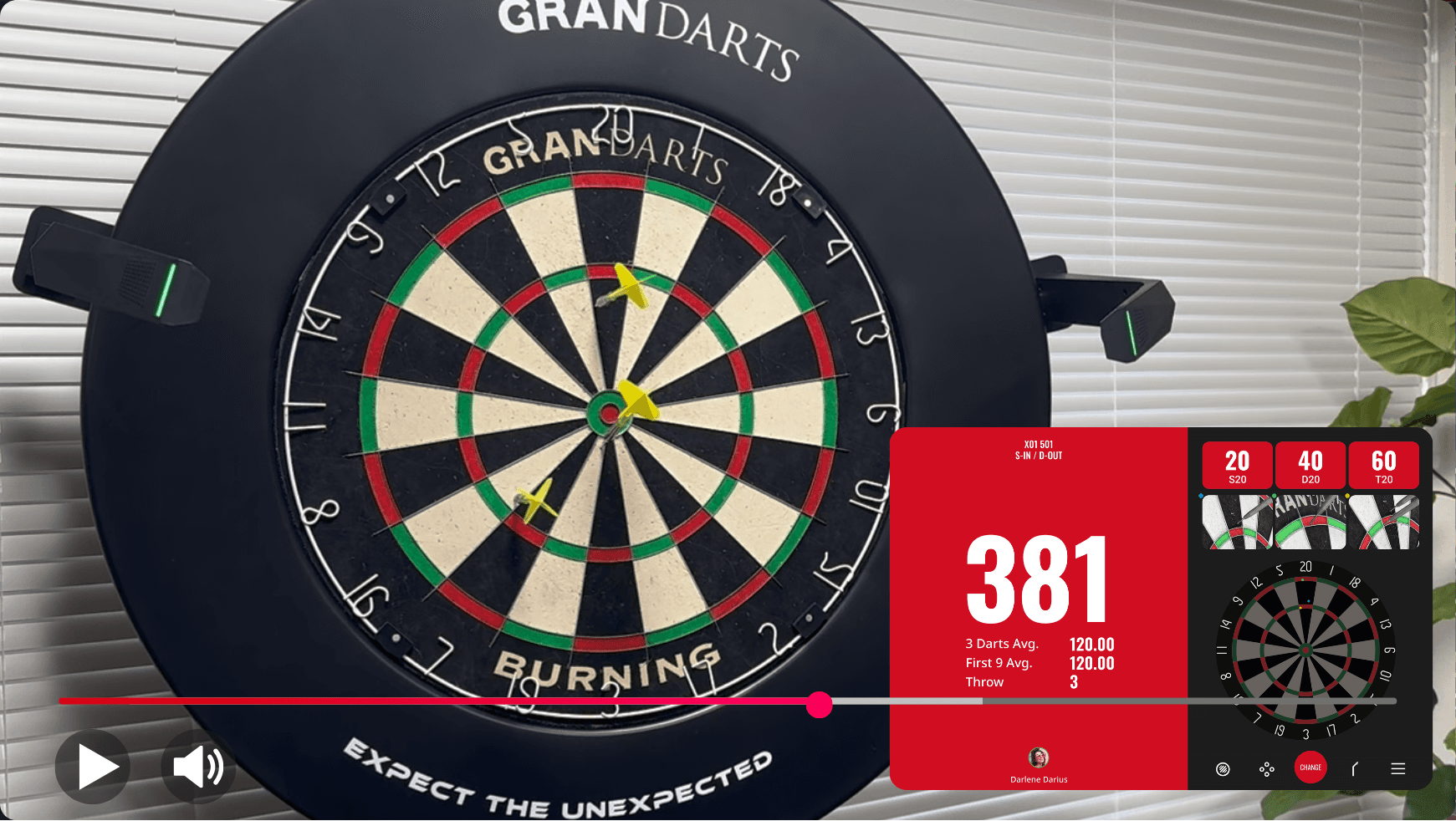While showing the actual gameplay screen and the dartboard, please share your impressions.