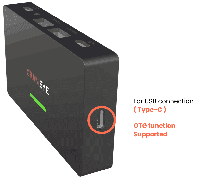 Android devices can connect the app and the GRAN EYE system using just the included cable.